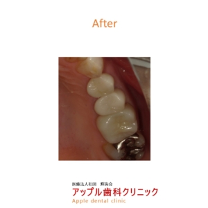 また、治療中は隔壁と仮歯を作製し、根管治療後にファイバーコア築造で土台をたて、ジルコニアセラミッククラウンを被せました。